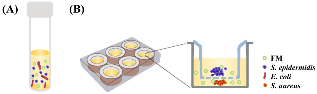 • Restoration of Microbiota Balance in Co-culture: In both the E. coli/S. epidermidis (EC_SE) and S. aureus/S. epidermidis (SA_SE) co-culture systems, FM reduced the growth and competitiveness of the pathogens. The addition of FM reversed the trend seen in control groups—where E. coli or S. aureus became dominant—and relatively increased the colony count of the beneficial S. epidermidis.