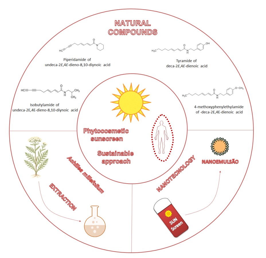 The novelty of this research lies primarily in the presentation of, for the first time, a stable photoprotective nanoemulsion incorporating a crude extract specifically derived from the little-explored roots of A. millefolium. The study leveraged the root’s unique phytochemical profile—potentially rich in alkamides and sinapaldehyde—as a multifunctional anti-photoaging agent. By integrating the extract into an advanced nanoemulsion platform, the researchers were able to demonstrate a direct correlation between the extract’s bioactive properties (antioxidant/depigmenting potential) and a systematic enhancement of sun protection performance. The results indicate a synergistic effect between the plant’s compounds and the chemical UV filters, particularly at the 0.5% concentration, which delivered the highest SPF and optimal UVA/UVB ratio.